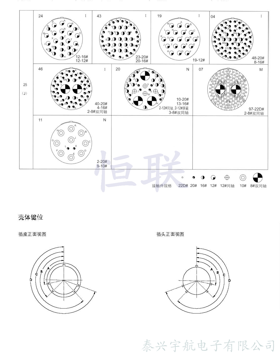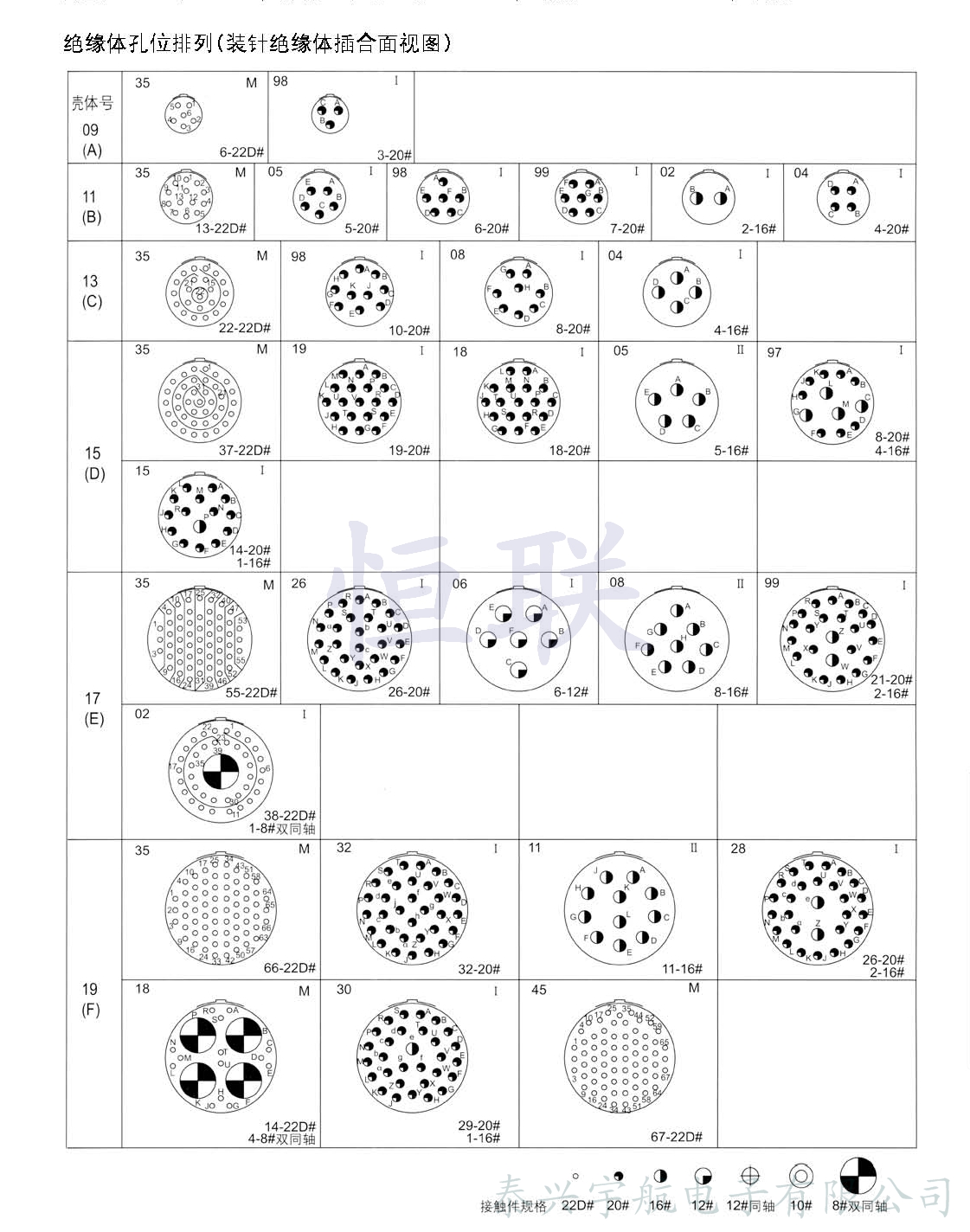 * 12#、 10#、 8#接觸件規(guī)格的孔位可裝配同軸、屏蔽接觸件