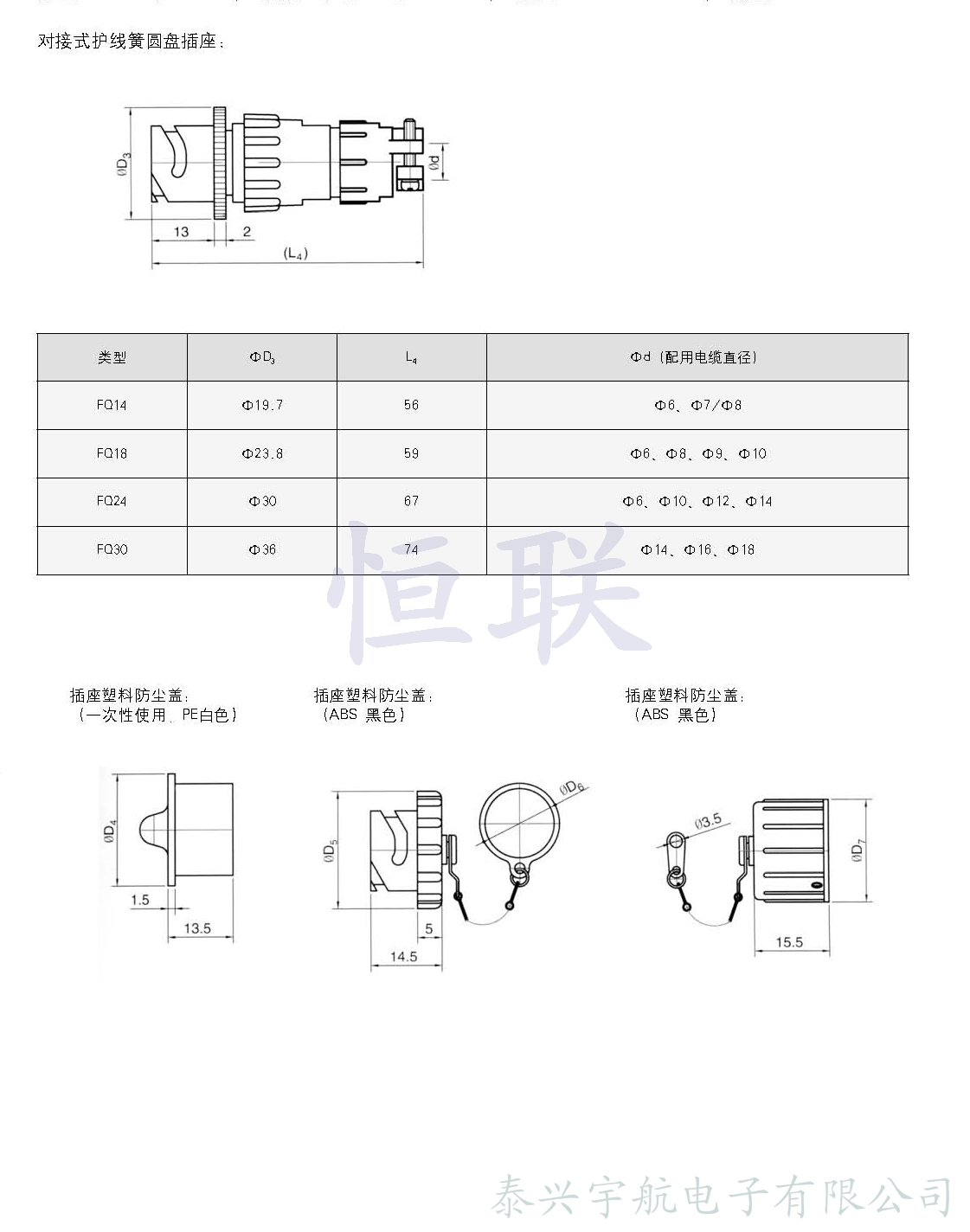 FQ系列卡口式防水圓形連接器,是在Q系列的基礎(chǔ)上,增加防水功能的改進(jìn)型產(chǎn)品,其中安裝尺寸和接觸件排列等同于Q系列產(chǎn)品。廣泛應(yīng)用于各種電子電氣設(shè)備之間的電路連接。該連接器具有可靠性高、抗震動(dòng)、密封性強(qiáng)等特點(diǎn),插頭與插座連接快速,使用方便,操作簡(jiǎn)單。其主要技術(shù)參數(shù)非等效采用DZQ/RE008-84標(biāo)準(zhǔn)